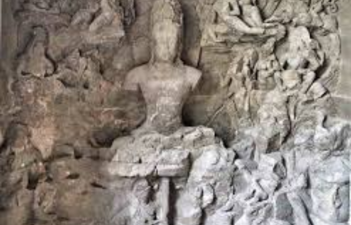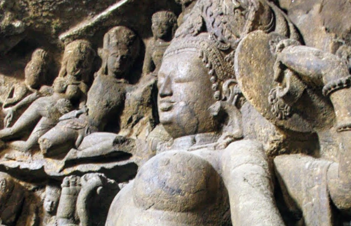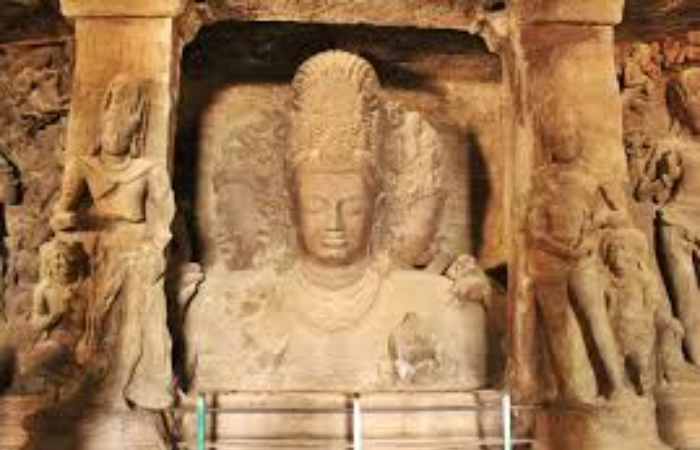 म्हणजे ही महेश मूर्ती होय. महेश मूर्ती तीन मूर्तींनी बनलेली आहे. महेश मूर्तीच्या पहिल्या चेहऱ्यावर रुद्र भार स्पष्टपणे जाणवतो , तर दुसरा चेहरा शांत निरामय दाखवलेला आहे.यालाच तत्पुरुष महापुरुष म्हणतात. उजवीकडील कोमल आणि प्रसन्न चेहरा पाहून मन हे प्रसन्न होते. अशा प्रकारे महेश मूर्ती ही तीन चेहरे असलेली प्रसिद्ध मूर्ती खूपच विलोभनीय आहे.
