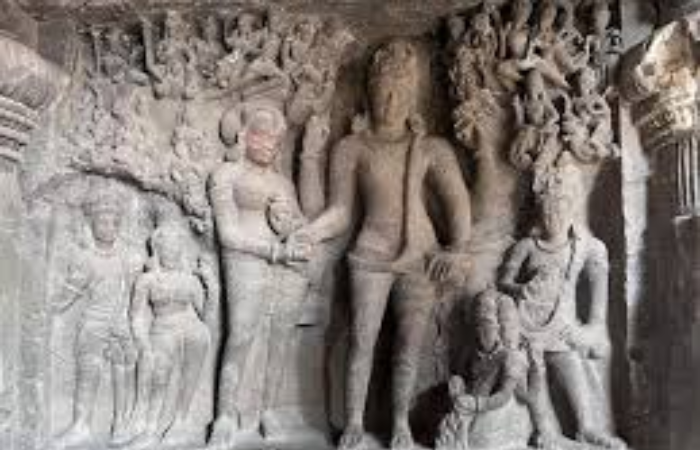 अंधकासुर वधाच्या शिल्पाच्या जवळच म्हणजे अगदी विरुद्ध बाजूला शिवपार्वतीच्या विवाहाचे एक सुंदर शिल्प आहे. हे शिल्प म्हणजे त्या काळातील शिव आणि पार्वती यांच्या आंतरजातीय विवाहाचे एक उत्तम प्रतीक आहे. पार्वती ही ब्राह्मण कन्या होती.तर शिव हा आदिम आदिम होता. त्यांचा विवाह जगन्मान्य झाला होता. शिवाने एक नवीन पायंडा जगासमोर ठेवला होता. सर्व मानव हे सारखेच आहेत त्यामध्ये भेदाभेद नसतो. हे प्राचीन काळात शिवाने स्वतःच्या कृतीतून दाखवून दिले होते.